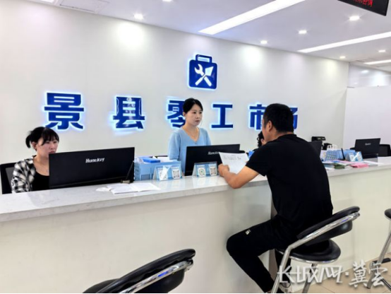 河北省衡水市景县零工市场,居民在零工市场进行信息登记。