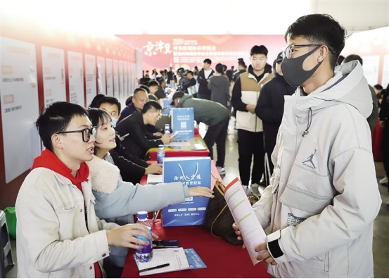 近年来,我市坚持实施就业优先战略和积极就业政策,千方百计帮扶重点群体就业,2021年至今,沧州市累计实现城镇新增就业36.5万人。图为市人社部门举办的京津冀劳务协作招聘会现场。