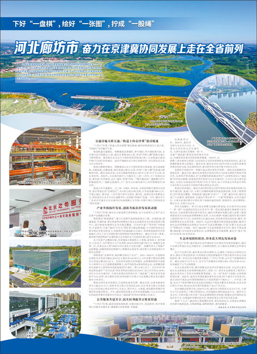 从物流通道到商贸枢纽,从产业承接到发展共创,从单向供给到双向共享……“十四五”时期,河北省廊坊市深度融入京津冀协同发展大局,牢牢把握历史性窗口期和战略性机遇期,充分发挥“京津走廊”区位优势,在交通、产业、公共服务、生态等领域精准发力、持续攻坚,在对接京津、服务京津中加快发展自己,奋力在京津冀协同发展上走在全省前列。