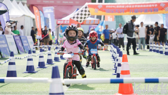 6月28日,2024(第四届)京张全季体育旅游嘉年华在张家口市崇礼区国家跳台滑雪中心启动。图为当日现场举行的“骑乐无穷”儿童平衡车赛。