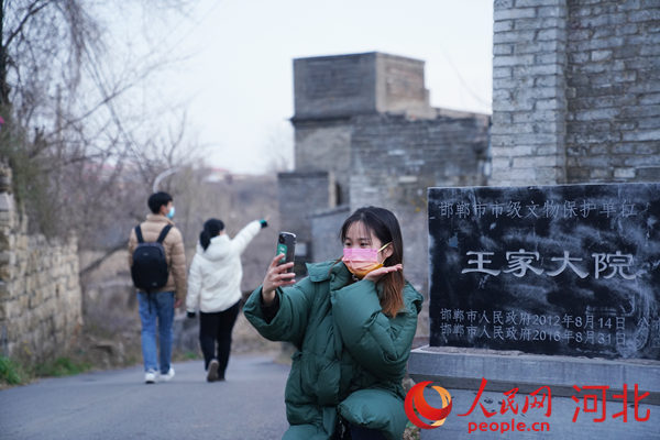 游客在峰峰矿区界城镇西老鸦峪村的王家大院拍照留念(资料图片)。 李栋摄