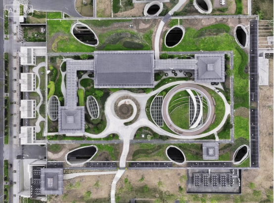 这是雄安新区剧村220千伏变电站(2025年4月15日摄,无人机照片)。该变电站屋顶覆土建设成公园,形成与城市融合共生的景观。新华社记者牟宇摄