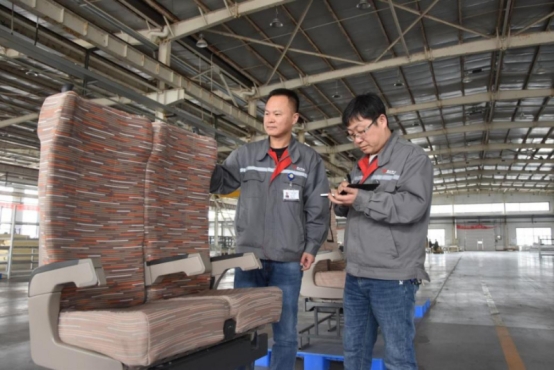 2025年10月10日,唐山华达轨道交通装备有限责任公司的技术人员测试座椅。