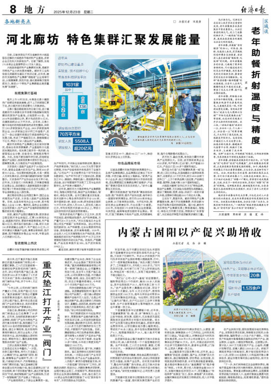 立足当下,展望未来。廊坊市特色产业集群蓬勃发展,离不开在规模集聚、科技创新与市场开拓等方面的持续探索。据介绍,廊坊市将在特色产业集群发展上聚焦高端化、智能化、绿色化方向聚力攻坚,持续深化“共享智造”,为区域经济转型升级贡献更多廊坊力量。