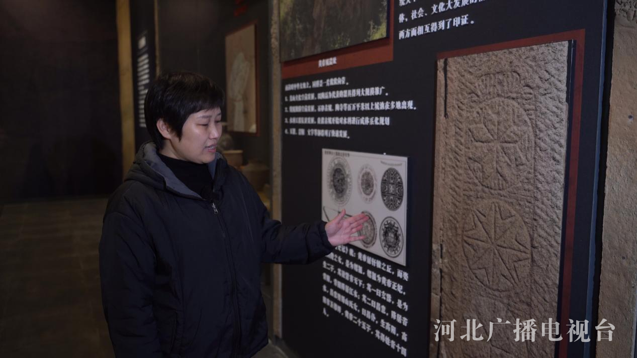 涿鹿博物馆宣教部主任王春燕介绍不同文物纹饰所代表的文化符号