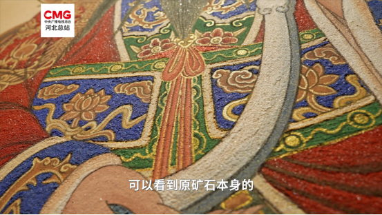 传承人根据画像的背景、肤色、服饰、纹饰,分层次来进行上色、晕染、开脸、绣粉。一幅画像所用的矿物质颜料少则数十种,多则上百种。永恒的天然矿物,通过世代相传的手艺,转化为可见、可感的震撼立体视觉。