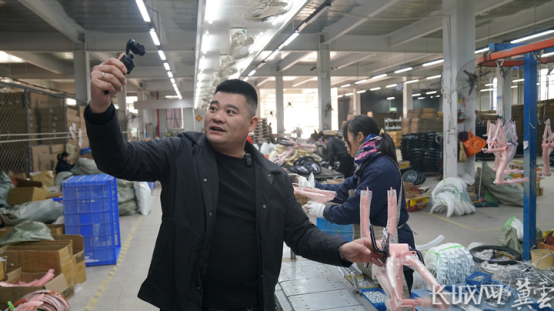 朱宗达在车间生产线上给直播间粉丝介绍产品。