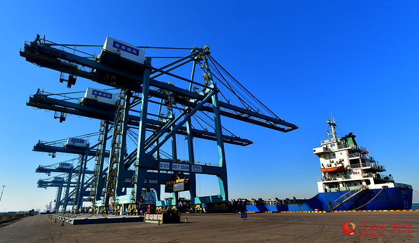 近日,货轮停靠在黄骅港综合港区集装箱码头作业。 苑立伟摄