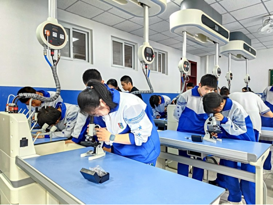 在位于燕郊高新区的北京潞河中学三河校区,学生们正在实验室里做实验。