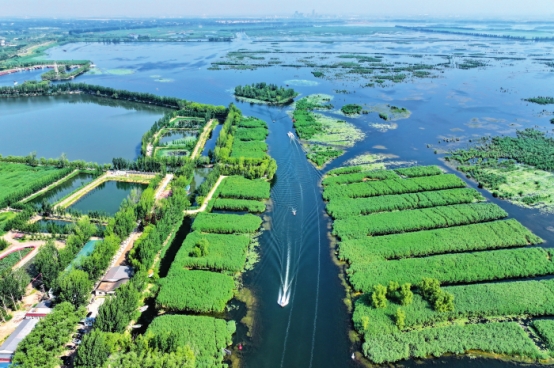 涵养生态、治污降废,筑牢绿色发展底色。雄安打造千里绿堤、环淀绿道、燕南堤,衔接中央绿谷、东部溪谷等大尺度城市生态空间,共同构成雄安森林环城、湿地入城、城淀相依、共生共融的生态画卷。开展白洋淀有史以来最大规模系统治理,深入实施清淤疏浚、百淀连通、退耕还淀、科学补水、严密防洪等五大工程,使淀区水质稳定保持在Ⅲ类标准。青头潜鸭、彩鹮等珍稀物种在新区安家栖息,极度濒危物种低斑蜻再现淀区,白洋淀“水下森林”逐步显现,鱼类恢复至50种。