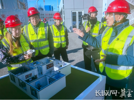 中国二十二冶集团雄安新区启动区创新坊住宅项目相关负责人向参观者介绍“好房子”标准。