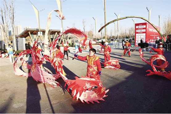 黄花沟公园舞龙表演。