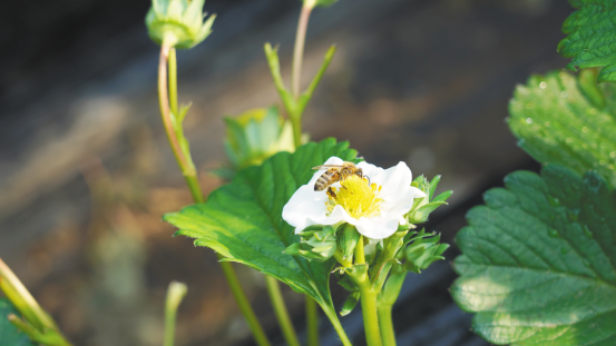 草莓花上忙碌的蜜蜂成了“天然质检员”。