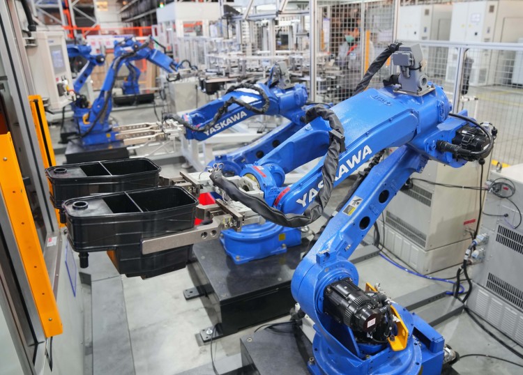 廊坊经济技术开发区一家汽车配件企业的机器人在工作中。新华社记者杨世尧摄