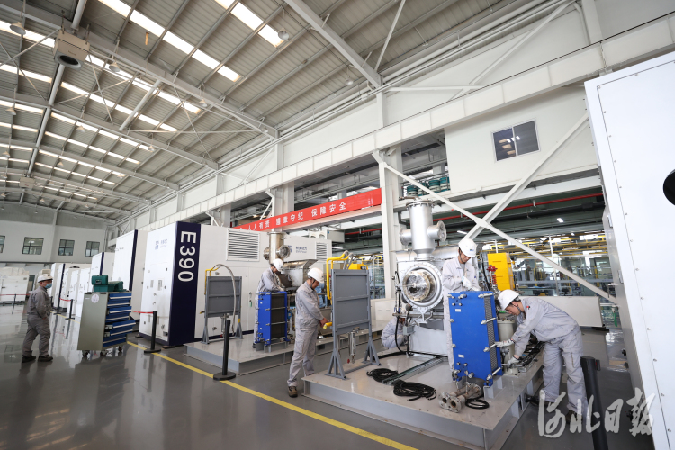 新奥动力科技(廊坊)有限公司车间内,装配工人正在进行整机集成。河北日报通讯员贾珺摄