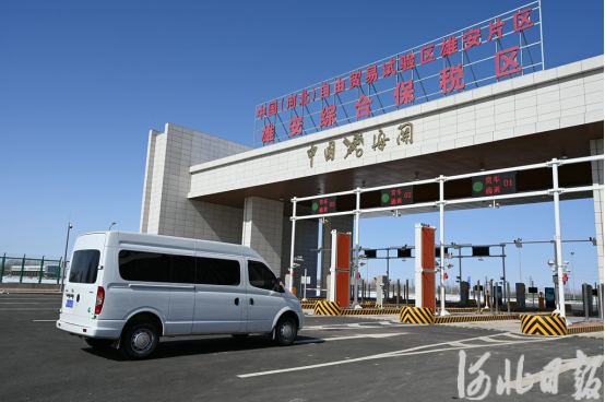 一辆装载有15万个压电石英的车辆通过雄安综合保税区卡口驶入。