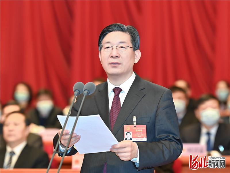 王正谱说,刚刚过去的2021年,是具有里程碑意义的一年,举国上下隆重庆祝中国共产党成立100周年,中华大地全面建成小康社会。习近平总书记两次视察河北并作出重要指示,给平山县北庄村全体党员回信,向首届“一带一路”·长城国际民间文化艺术节致贺信,7400多万燕赵儿女深受鼓舞、倍感振奋。一年来,我们始终坚持以习近平新时代中国特色社会主义思想为指导,坚决贯彻习近平总书记对河北工作重要指示,全面落实党中央、国务院决策部署,在省委坚强领导下,较好完成省十三届人大四次会议确定的主要目标任务,实现了“十四五”良好开局。齐心协力抗疫情、稳增长,经济发展稳中向好,有效处置两次突发局地疫情,有力守护了人民生命健康,扎实做好“六稳”“六保”工作,预计全省生产总值增长6.5%,一般公共预算收入增长8.9%,发展质量效益不断提高。全力以赴担使命、促协同,“三件大事”实现重要突破,京津冀协同发展取得新进展,82项年度重点任务全部完成,雄安新区建设发展成效显著,“四纵三横”高速公路网全面建成,冬奥会筹办全面就绪,所有场馆和配套设施高质量完成。坚定不移调结构、转动能,产业优化升级步伐坚实,坚决去、主动调、加快转,深化供给侧结构性改革,装备制造业营业收入超万亿元,高新技术产业增加值预计增长12%。持之以恒育主体、建平台,创新驱动发展势头强劲,全社会研发经费投入预计增长10%,新增国家高新技术企业1500家,吸纳京津技术合同成交额增长40%以上,17项科研成果获国家科学技术奖,“分类施策推动县域科技创新”做法获国务院通报表扬。坚持不懈治污染、优生态,绿色低碳发展迈入新轨道,蓝天碧水净土保卫战取得突破性进展,邢台、邯郸、石家庄退出全国重点城市空气质量“后十”,全省PM2.5平均浓度下降15.3%,压减地下水超采量8.8亿立方米,碳达峰碳中和工作有序推进。不失时机抓改革、扩开放,发展动力活力不断增强,138项改革任务全面完成,在全国率先推行省级“一窗综合受理”,市场主体净增36.4万户,国资国企、财税金融改革持续深化,医药卫生体制改革深入推进,实际利用外资增长5.3%,全省开发区营业收入增长8%。统筹兼顾补短板、增优势,城乡面貌发生新变化,巩固拓展脱贫攻坚成果,脱贫县全部实现与乡村振兴有效衔接,新型城镇化扎实推进,全省常住人口城镇化率达61%左右,城市经济、县域经济加快发展,沿海经济实力不断提升。用心用情办实事、惠民生,社会大局保持和谐稳定,全省财政民生支出占一般公共预算支出80.8%,20项民生工程和10件民生实事全部完成,平安河北建设扎实推进,防控金融风险有力有效,政府债务率处于全国较低水平,基层社会治理水平稳步提升。