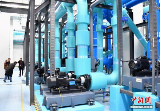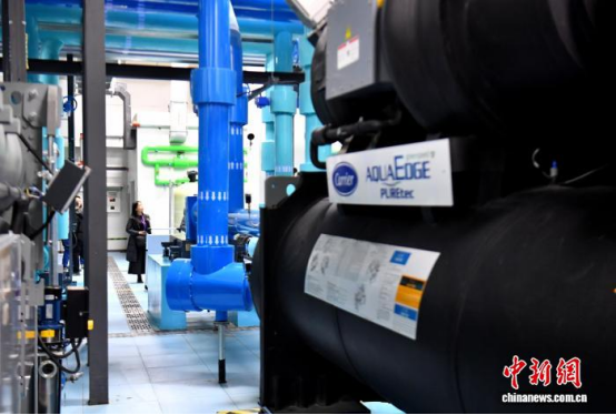 图为参会人员在中国中化大厦高效机房参观。