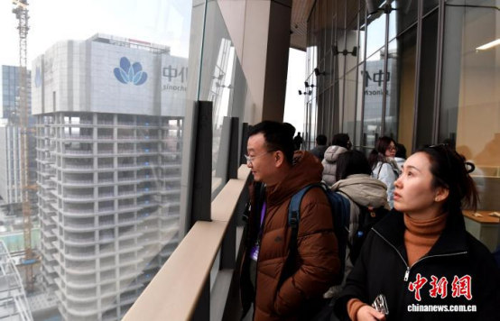 图为参会人员在中国中化大厦参观。