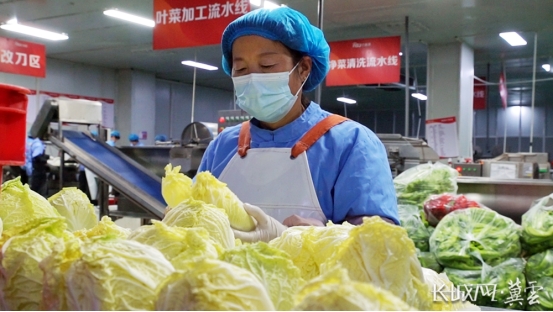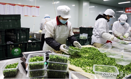 走进农速源的净菜加工车间,几十名身着工装、佩戴口罩的工人规范有序地忙碌着,各环节衔接紧密,现场井然有序。“这些工人大多是来自周边三乡五里的村民,在家门口就业,既能增收,又能顾家。活儿不累,收入稳定,大家干劲儿都很足。”邢永亮告诉记者。