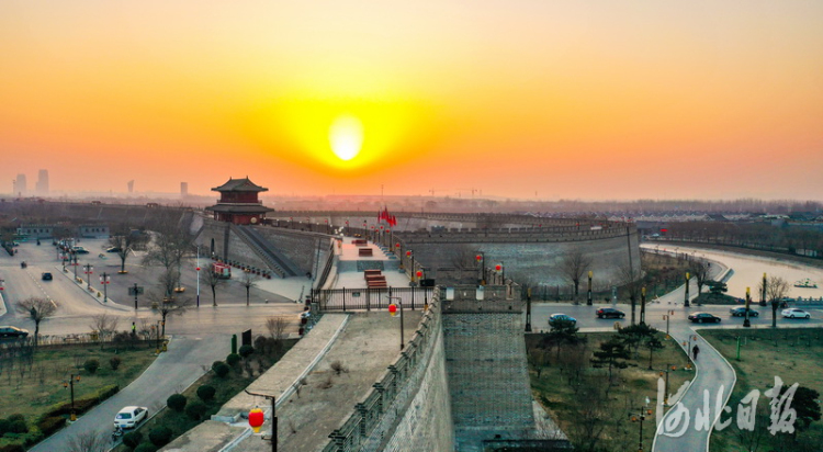 2021年1月1日,新年的第一缕阳光洒在石家庄市正定南城门上。河北日报记者耿辉摄