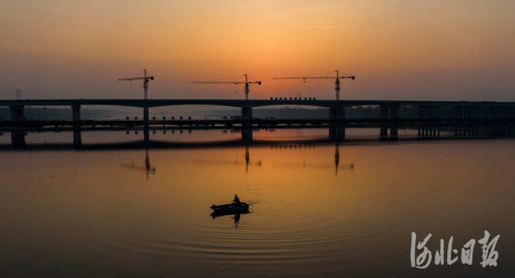 2021年3月30日,建设中的京德高速文安洼1号特大桥。河北日报记者赵杰摄