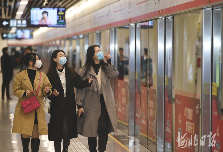 2021年2月19日,市民在石家庄地铁北国商城站有序乘坐地铁出行。河北日报记者史晟全摄