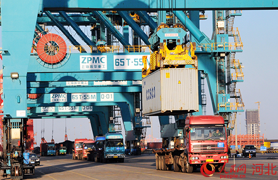 渤海新区集装箱码头。 苑立伟摄