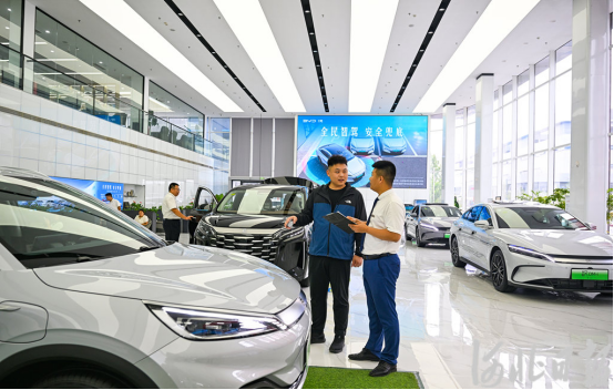 石家庄市民在裕华汽车园一家4S店选购新能源汽车。
