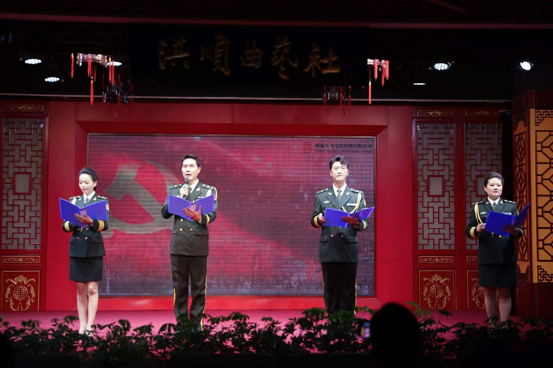 2022年1月20日,由中共石家庄市委宣传部指导,河北天飞文化传媒有限公司承办的“不忘初心使命 再扬时代风帆”——大型红色诗歌朗诵会在石家庄洪顺曲艺社举行。