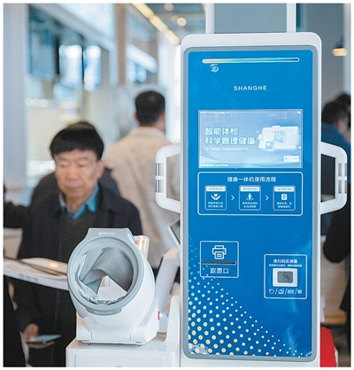 雄安新区启动区文华社区华序府智慧食堂内安装的健康一体机。