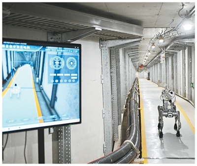 四足巡检机器人在雄安新区雄东电缆隧道内巡检。