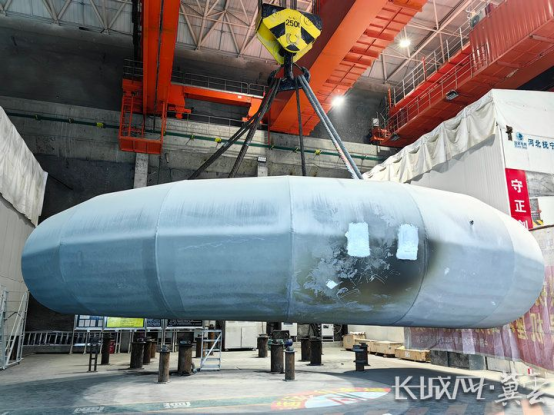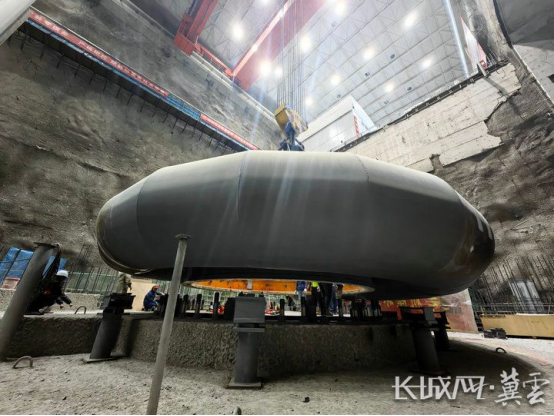 地下110米,灯光如昼。巨大的厂房穹顶之下,一座重176吨,高2.5米,最大直径近12米的“钢铁蜗牛”正静静地放置在距离地面不到半米高的支墩上。