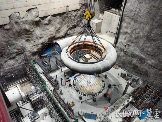 移动到4号机组机坑座环基础正上方,座环蜗壳开始缓慢下降。“咱们一起下去。”跟在马臣身后,记者走过长长的通道,走下一级又一级的台阶,“工程进度很快,可以说一天一个样,很多路昨天还可以走,今天就不一定走得通。”听到马臣的语气轻松一些,记者以为马上就要见到落座的激动时刻,可座环蜗壳却在距离基础环上方1000毫米左右,放缓了下降速度。