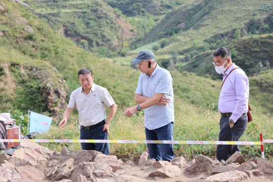 2025年9月9日,专家参观郑家沟遗址一号积石冢。