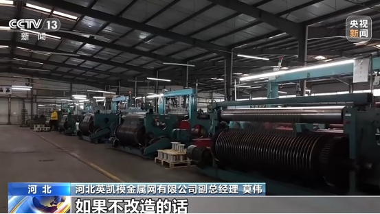 河北英凯模金属网有限公司副总经理 莫伟:这个机型已经40多年了。如果不改造的话,有一些高水平的订单有可能都吃不下、不敢接。