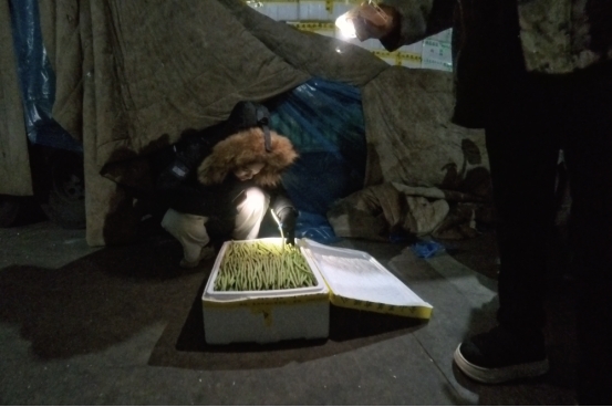 一些二级批发商和超市,希望第一时间能同步得到产业链上游的行情和完成采购,于是蔬菜买手这样的新农人职业就产生了,要进货的客户不用来人,只需发一份清单给卢鑫他们,剩下就等着在家接货。