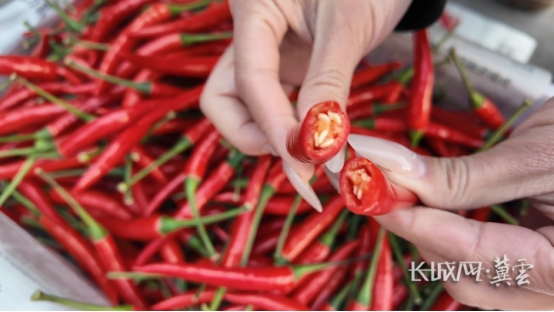 刘颖展示刚到货的米椒。