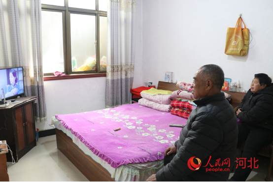 河北赞皇县墙板沟自然村民李占福和老伴儿在家看电视。