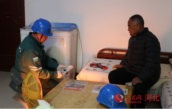 国网赞皇供电公司嶂石岩服务站贾立杰在帮村民检查线路。