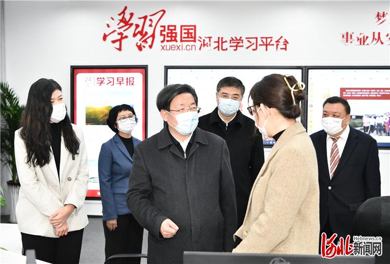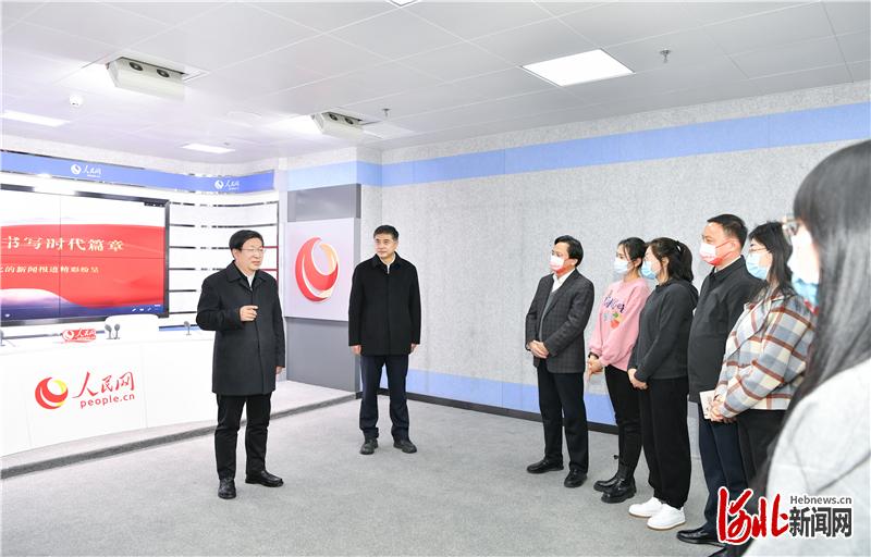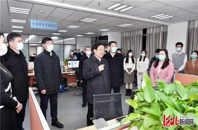 近日,省委书记、省人大常委会主任王东峰到中央驻冀新闻单位和省直新闻单位走访慰问。这是王东峰在长城新媒体集团走访慰问。河北日报记者赵海江摄