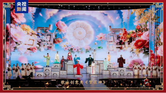 春晚最悠扬的旋律,来自薪火相传的中华文脉。《立春》在诗意春景中唱出万象更新的盎然生机。歌咏创意秀《贺花神》,“十二花神”带观众穿梭于不同时空,沉浸领略四季更迭的时令节律和东方意蕴。从千年壁画中踏乐而来的舞者,在《丝路古韵》中重现飞天乐舞的婆娑迤逦。戏曲《春晖满梨园》,老中青幼四代同台演唱,京剧、豫剧、越剧、粤剧、评剧荟萃一堂,展现戏曲艺术的枝繁叶茂。
