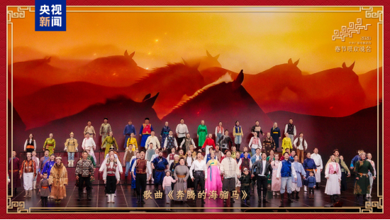 在中华文化里,马是刚健雄壮、自强不息的象征,昭示着行稳致远、兴旺发达的前景。周深与中华民族大家庭的孩子们用歌声讲述《山海经》中日行千里、能乘风而行的神马吉量的故事。歌曲《奔腾的海骝马》带观众在悠扬绵长的非遗巴尔虎长调中尽览辽阔草原生生不息的生命力。