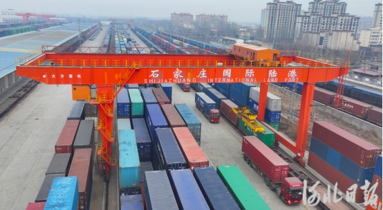 2月17日,大年初一,石家庄国际陆港。铁轨交错着伸向远方,巨大的龙门吊舒展长臂,正将一个个集装箱稳稳吊起。