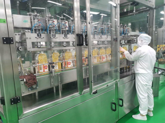2月15日,宁晋县玉锋实业集团玉米油自动包装生产线正在运转。