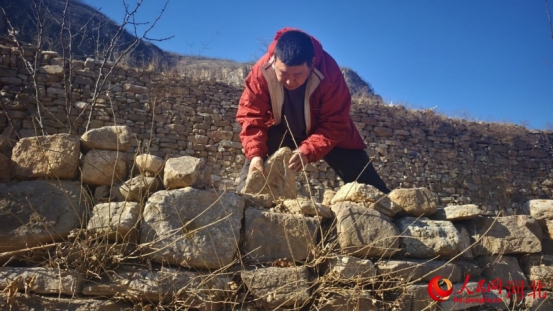 砌石垒堰、撒肥整土……河北涉县王金庄村的旱作石堰梯田里,39岁的王虎林正在忙碌。