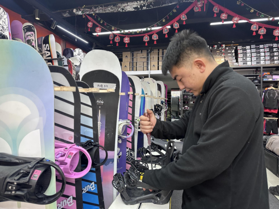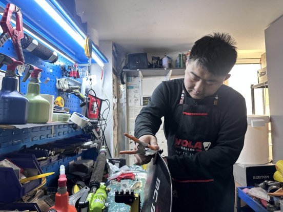 如今,店里除了做雪具租赁生意,也接雪板专业维护订单。春节前后,米嘉轩和店里十二三个店员忙得像陀螺。