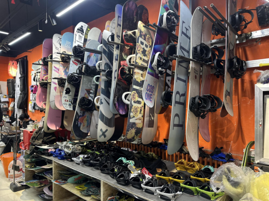 米嘉轩:小店每年都有新的改变。最开始租的就是偏游客的装备,单纯只是让大家来崇礼体验滑雪;2017年开始,雪服的样式变多了,大家选择性更多;2018年开始雪板升级,分为适合普通游客的,以及进阶一点的装备;再到后来,慢慢从一些头盔之类的小件开始,也有了品牌产品的租赁,它的安全性更高,雪鞋按照不同雪友滑行的要求分硬度,包括雪板也有了分类,基本上是逐年一点一点升级的。