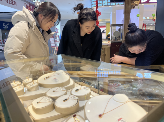 “虽然现在的金价比较高,但是我还是想在春节期间买点金饰,犒劳忙碌了一年的自己。”在银座商城一家金店,市民张女士一边挑选,一边说。销售员文丽展示着几款热销产品,她告诉记者,为了迎接新年,店内推出了多款小克重、寓意吉祥的马年金饰,适合作为新年礼品。
