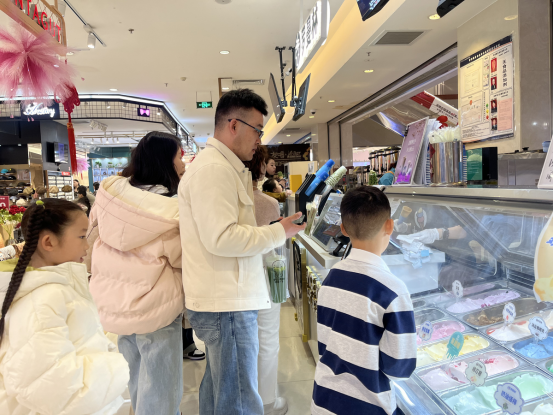 商场内市民正在排队购买冰激凌